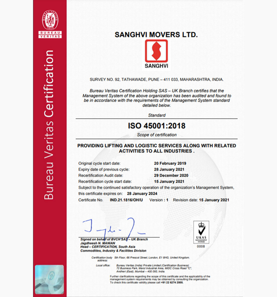 Sanghvi Movers Limited is committed to providing all employees with ta safe work place. The company’s health and safety procedure has been developed keeping in mind the following primary goals.