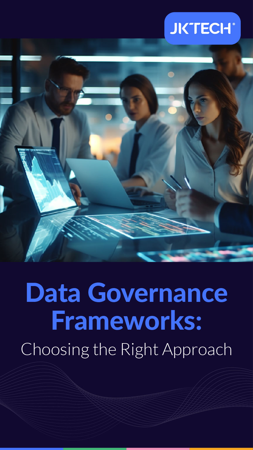 Data governance frameworks include centralized, decentralized, and hybrid models. Centralized models ensure consistency, decentralized models offer flexibility, and hybrid models balance both.