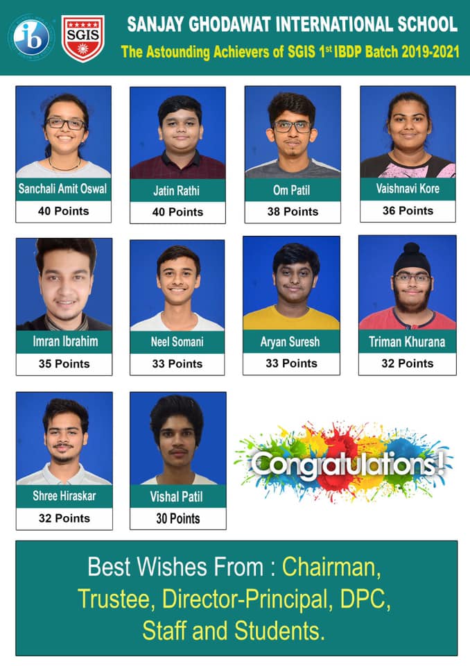 Heartiest congratulations to the first batch of Sanjay Ghodawat International school (IBDP Students) for their excellent performance in DP exam 2021.