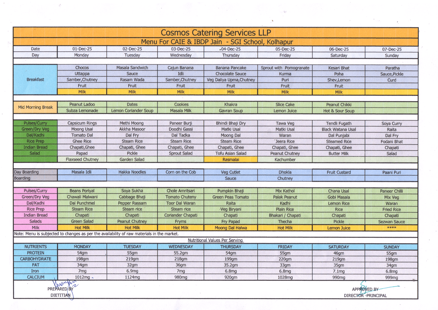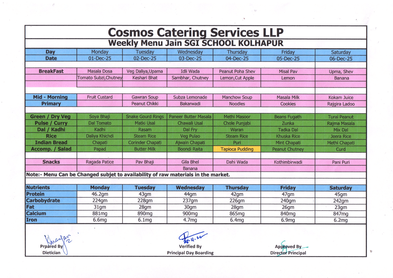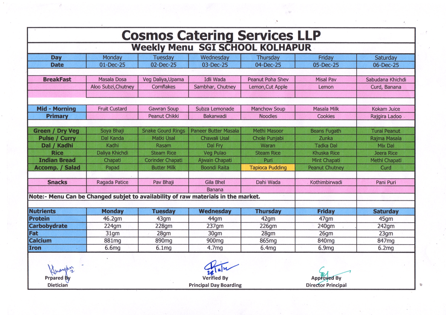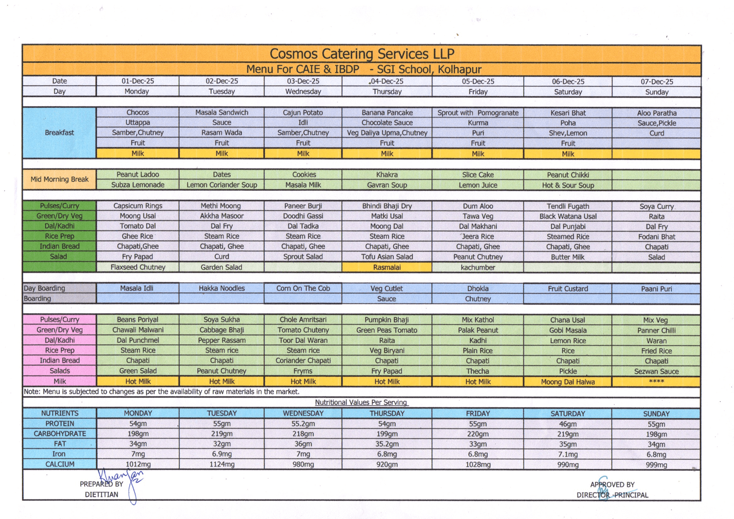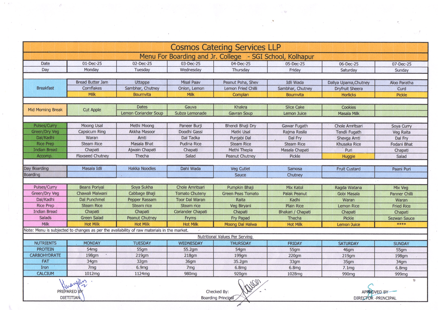 Kolhapur School Food Menu