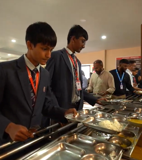 At SGIS Pune, we view mealtimes as moments of connection, community, and care. Dining is not just about nourishment-it is an integral part of our boarding and day school life, supporting health, wellbeing, and companionship. Each day begins with the comforting tradition of morning togetherness —a warm cup of chocolate /milk—served in the Houses to give students a gentle start to their mornings. All main meals are served in the Central Dining Hall, where students and staff dine together. This shared space encourages interaction across year groups, deepens bonds, and nurtures a vibrant school culture. A relaxed Sunday brunch is a weekly highlight, offering a leisurely and informal dining experience over three hours. Nutritious mid-morning and evening snacks are provided daily to keep students energised and focused throughout their day. Additionally, the School Tuckshop, opens once a week, offers students the joy of occasional treats in a supervised and balanced manner.